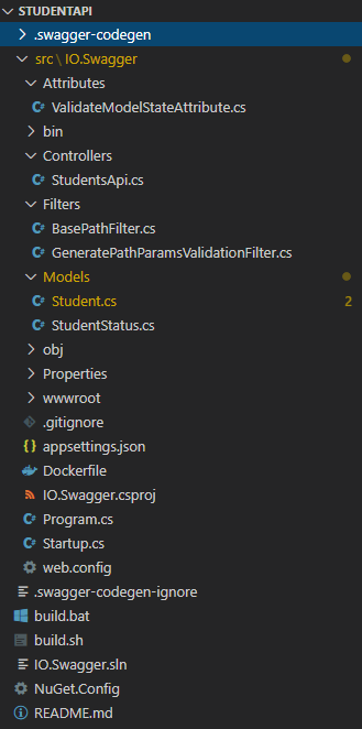 위 코드의 각 메소드에 Swashbuckle이 제공하는 특성이 붙은걸 보면 짐작할 수 있겠지만, Swagger Codegen으로 생성한 코드에는 이미 Swashbuckle까지 설정이 되어 있다.