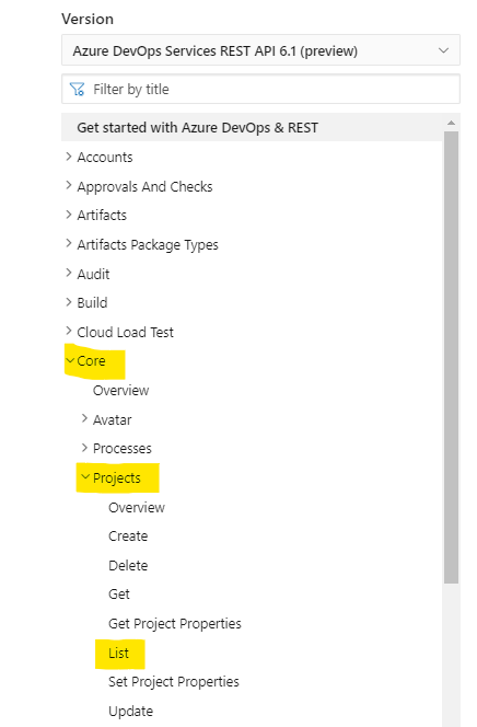 GET https://dev.azure.com/{organization}/_apis/projects?api-version=6.1-preview.4