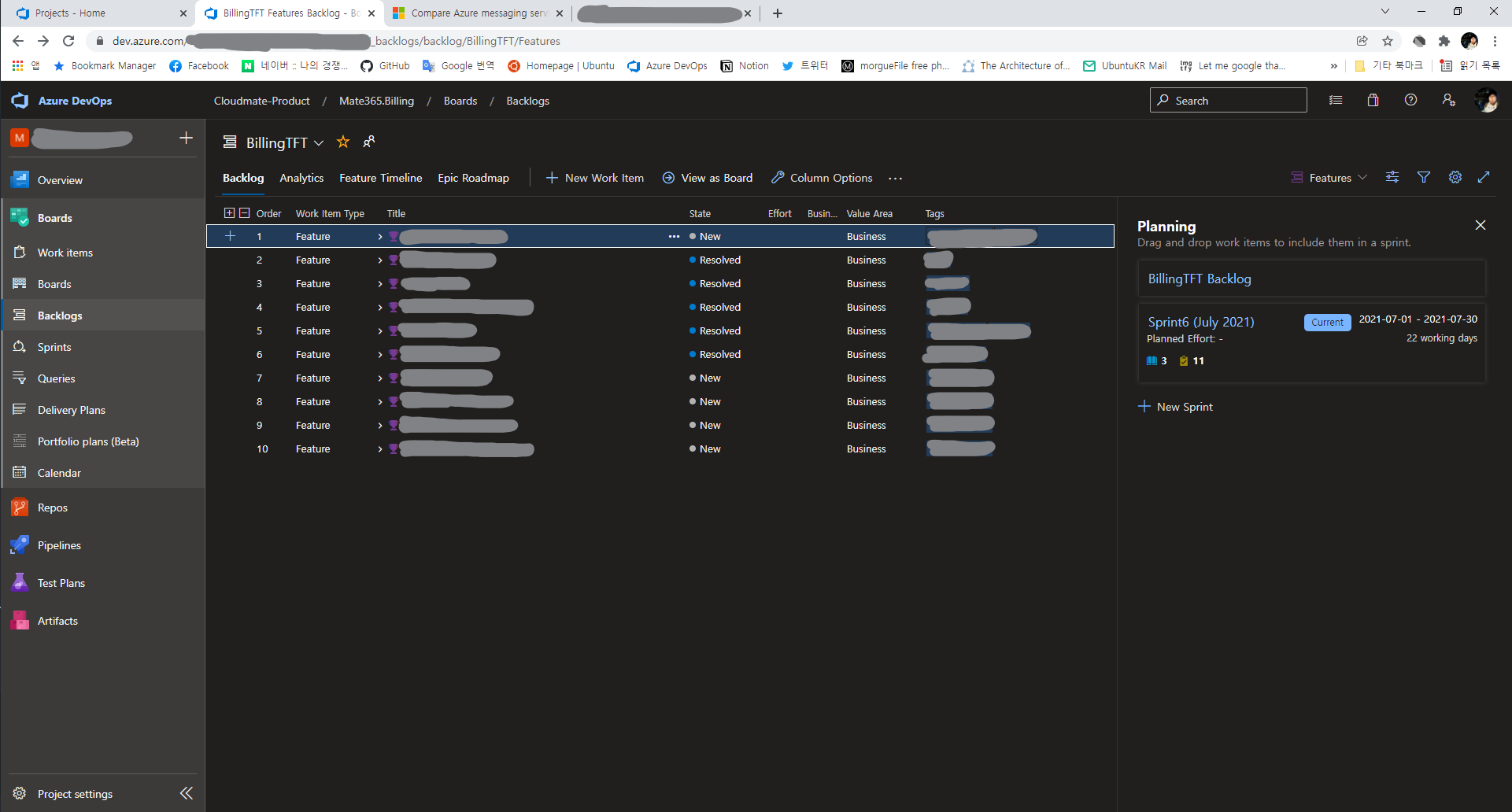 아래 사진 처럼 Azure Boards 에 나오는 Work Item 목록을 조회하는 것을 예로 들어 보겠습니다. 사진에 나오는 것을 API 로 조회 하려면 어떻게 해야 할까요? 문서에서 Work Item 관련 API 를 찾으면 되긴 하겠지만. API 문서를 처음 본다면 API 가 많아서 그 중에 찾기 어려울 겁니다.